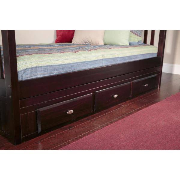 Espresso Twin over Twin Solid Pine Bunkbed with 3-Drawer Underbed Storage