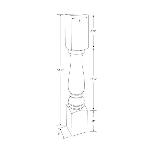 35.25 in. x 5 in. Unfinished Solid North American Hard Maple Plain Full Round Kitchen Island Leg (4-Pack)