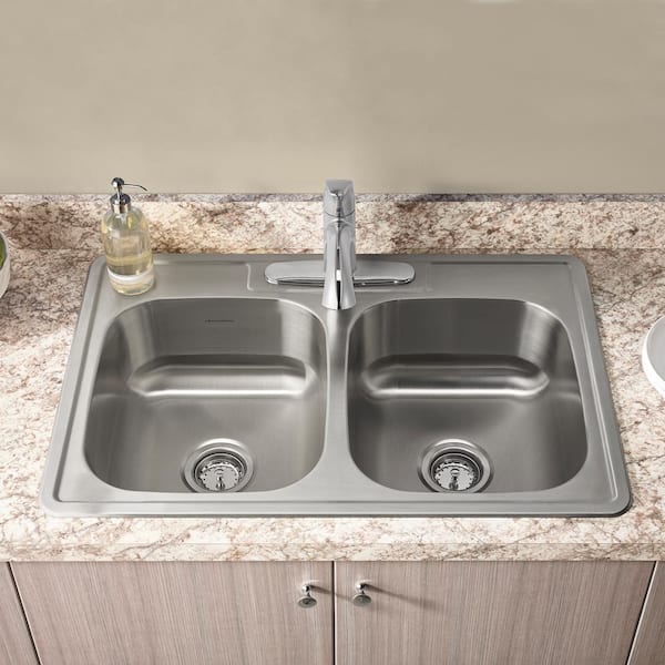 Colony Pro Drop-In Stainless Steel 33 in. 3-Hole Double Bowl Kitchen Sink Kit
