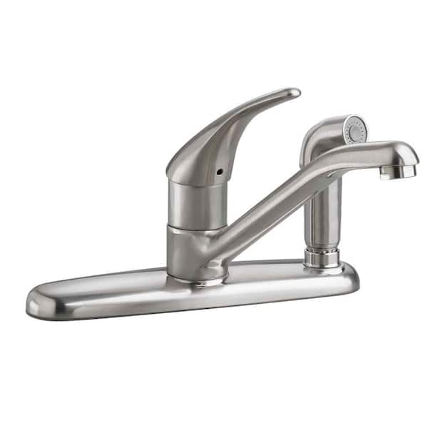 Colony Soft Single-Handle Standard Kitchen Faucet with Side Through Escutcheon Sprayer in Stainless Steel