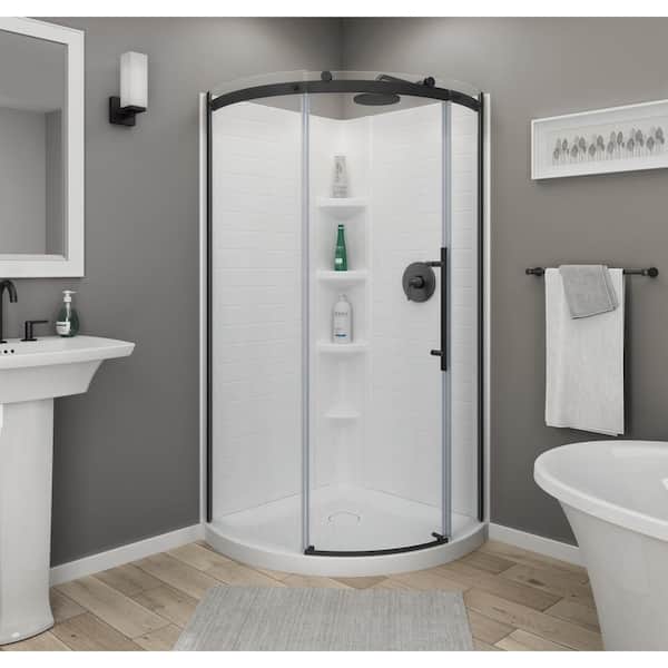 Ovation Curve 32 7/8 in. - 36 in. W x 72 in. H Sliding Frameless Curved Shower Door in Matte Black