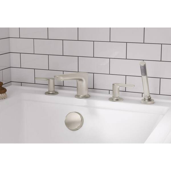 Studio S 2-Handle Deck-Mount Roman Tub Faucet for Flash Rough-in Valve with Hand Shower in Brushed Nickel