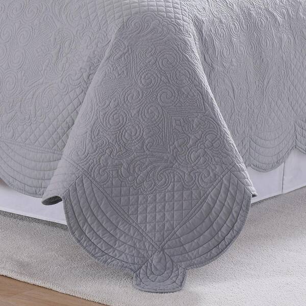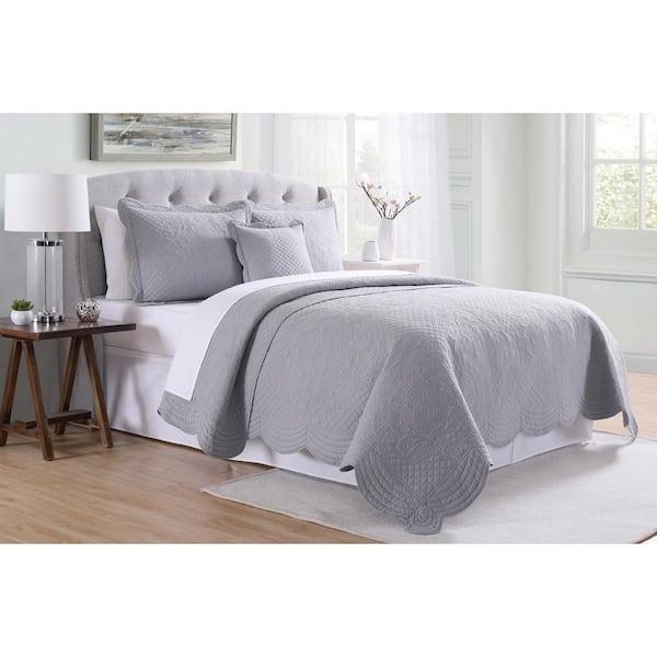 French Tile Scalloped King 4-Piece Cotton Quilt Set in Grey