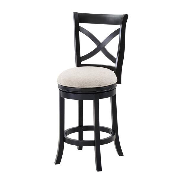 Belmont 41 in. High Black X-Back Wood 26 in. Seat Height Bar Stool with Light Gray Fabric Seat