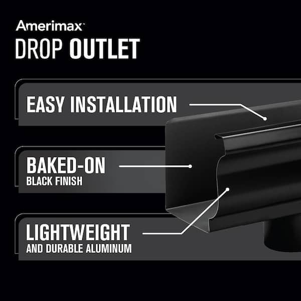 5 in. Black Aluminum K-Style Gutter End with 2 in. x 3 in. Drop Outlet