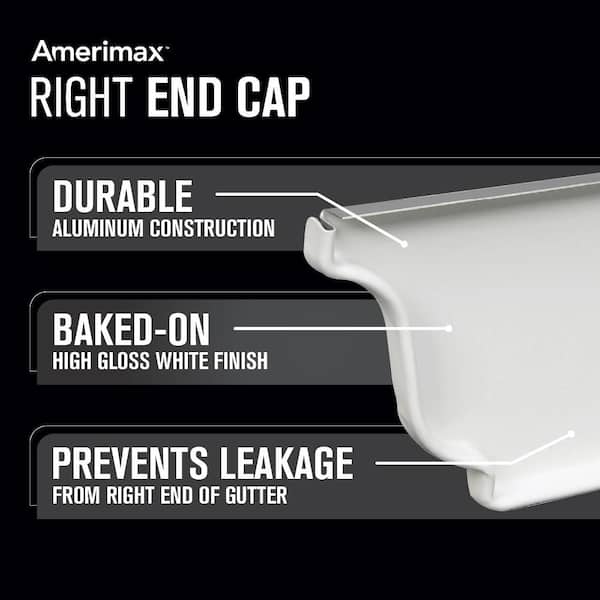 5 in. High Gloss 80 Degree White Aluminum K-Style Right End Cap