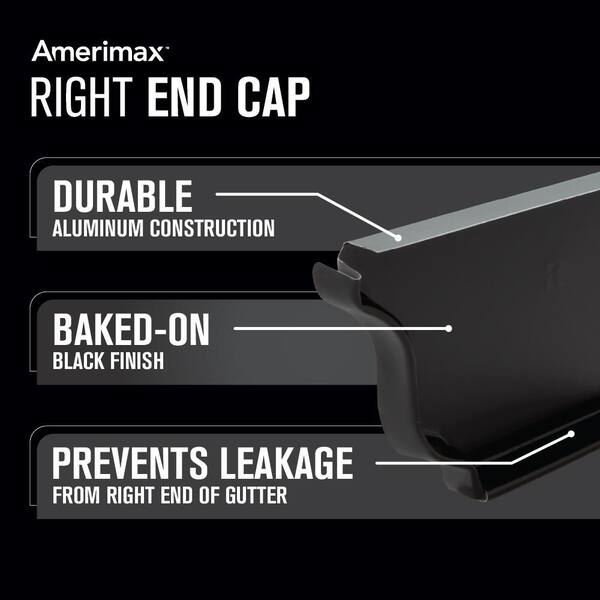 6 in. Black Aluminum K-Style Right End Cap