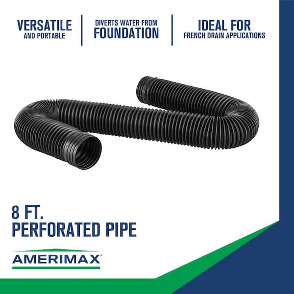 FLEX Drain 4 in. x 8 ft. Black Copolymer Perforated Drain Pipe