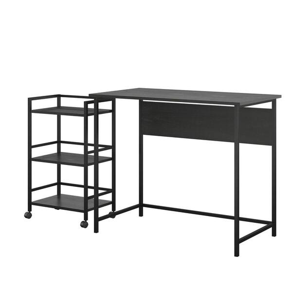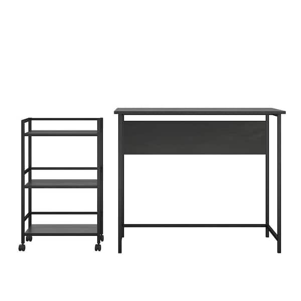 Bernay 36 in. Black Oak Desk with Rolling Cart Bundle
