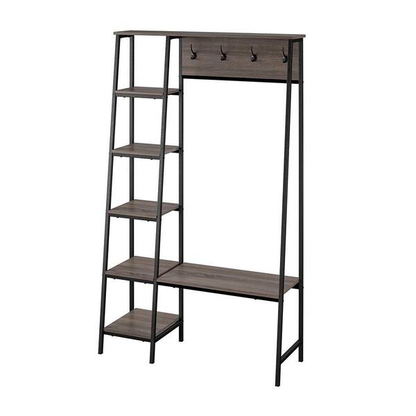 Seneca Distressed Gray Oak Entryway Hall Tree with Bench