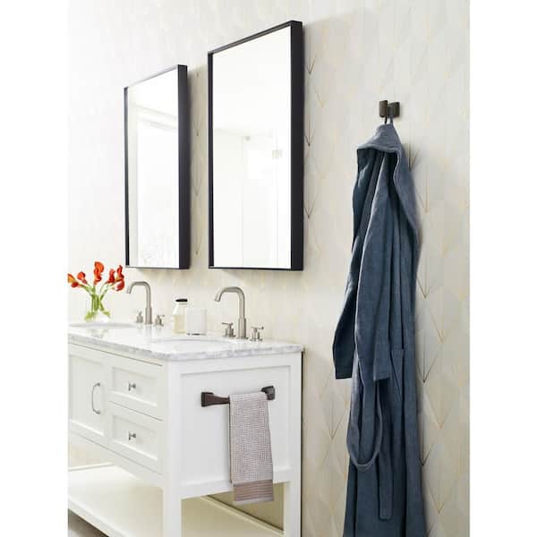 • Towel bar in oil-rubbed bronze adds a touch of classic style