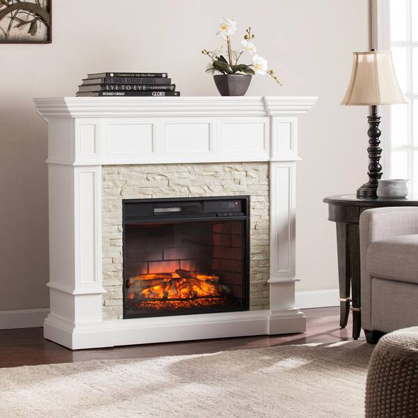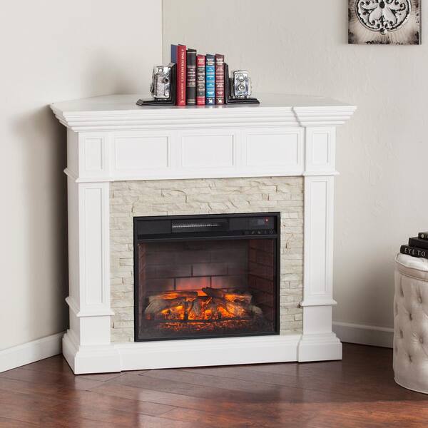 Amesbury 45.5 in. W Corner Convertible Infrared Electric Fireplace in White
