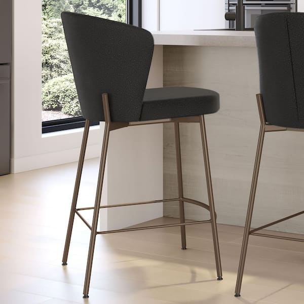 Camilla 31 in. High Back Bar Stool Charcoal Grey Boucle Polyester / Bronze Metal