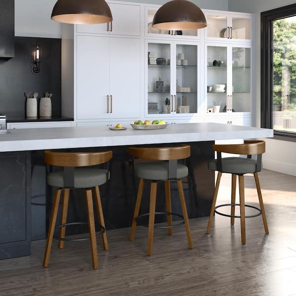 Cohen 26 in. Charcoal Grey Polyester / Light Brown Wood Swivel Counter Stool
