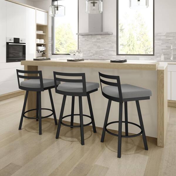 Derek 26 in. Grey Polyester/Black Metal Counter Stool