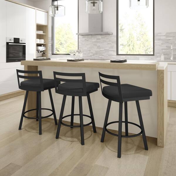 Derek 30 in. Black Faux Leather/Black Metal Bar Stool