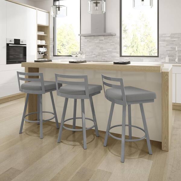 Derek 30 in. Glossy Grey Metal Light Cold Grey Polyester Bar Stool