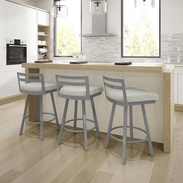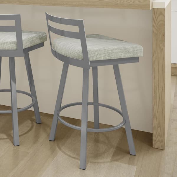 Derek 30 in. Grey White Woven Fabric Glossy Grey Metal Swivel Bar Stool