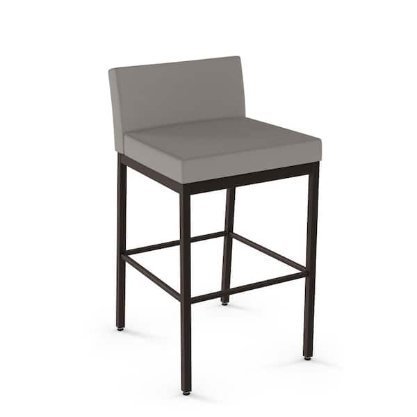 Fairfield Plus 26 in. Taupe Grey Faux Leather/Dark Brown Metal Counter Stool