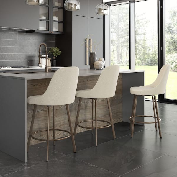 Harper 27 in. Cream Boucle Polyester / Bronze Metal Low Back Swivel Counter Stool
