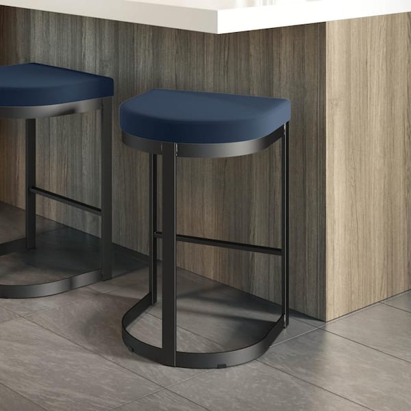 Lester 30 in. Blue Polyurethane/Black Metal Bar Stool
