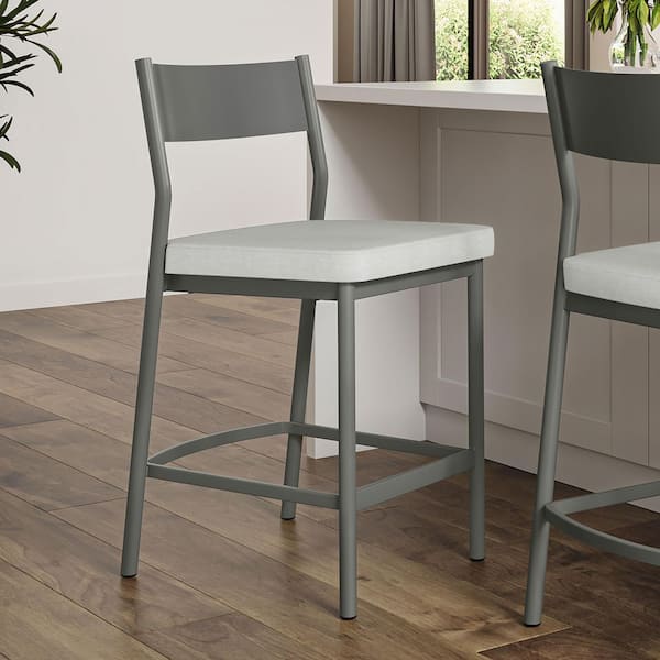 Madeira 26.75 in. White PVC / Dark Grey Metal Counter Stool