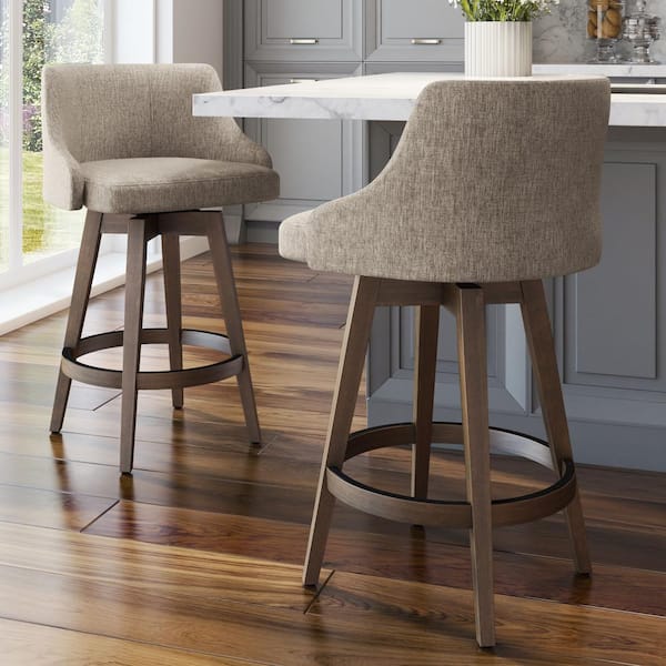 Nolan 30 in. Swivel Bar Stool - Beige and Brown Woven Polyester/Brown Wood