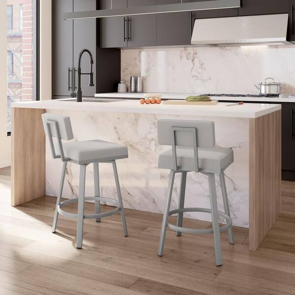 Staten 26 in. Light Grey Polyester/Shiny Grey Metal Counter Stool