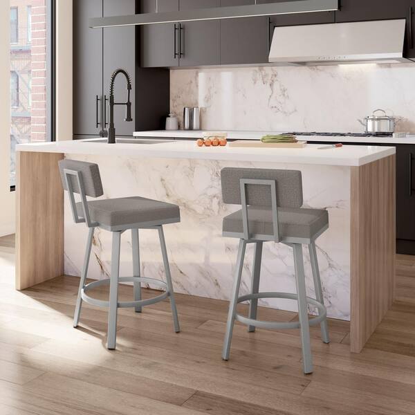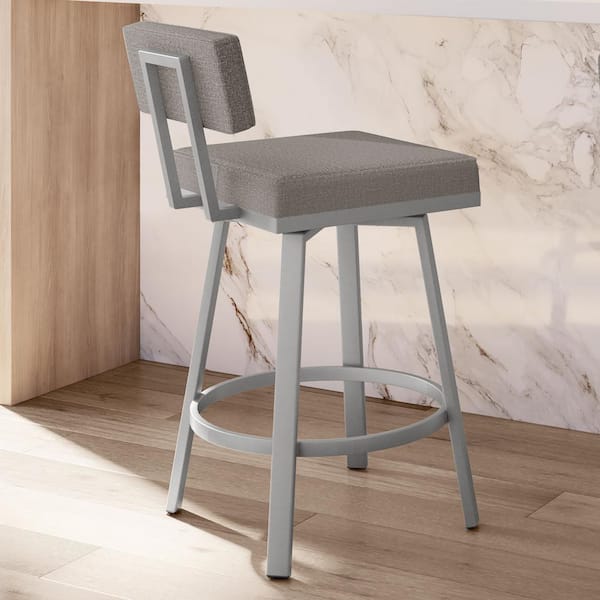 Staten 26 in. Silver Grey Polyester/Shiny Grey Metal Counter Stool