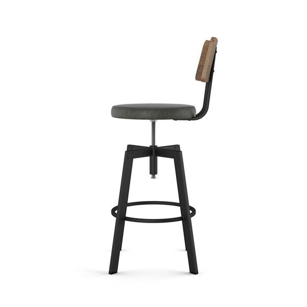 Symmetry Grey Faux Leather / Light Brown Birch Wood / Black Metal Adjustable Stool