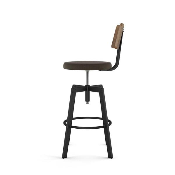 Symmetry Textured Black Metal Grey Polyester Dark Brown Wood Adjustable Stool
