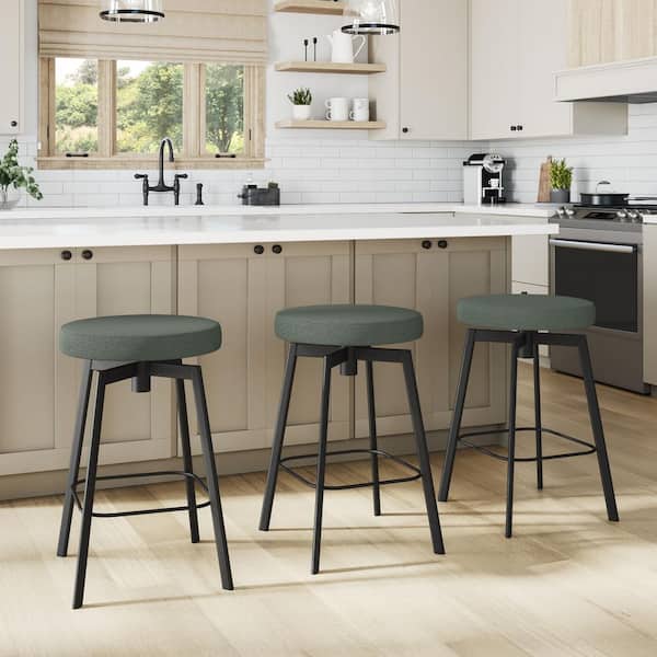 Tanner 26 in. Swivel Counter Stool - Blue and Green Boucle Polyester/Black Metal