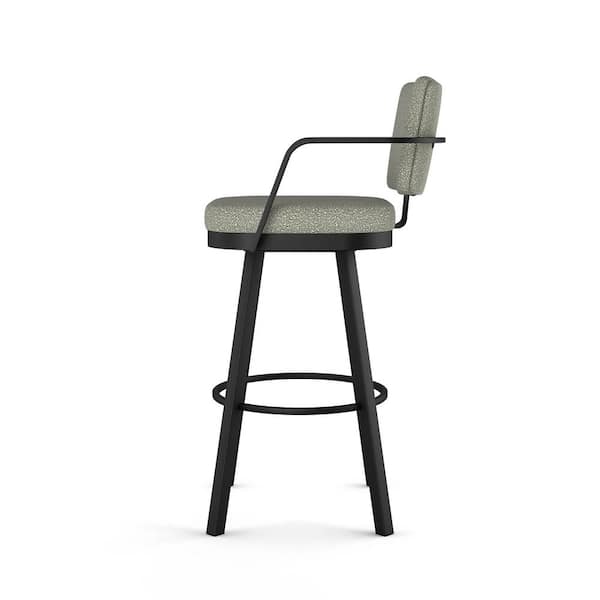 Thea 26 in. Light Beige and Grey Boucle Polyester / Black Metal Swivel Counter Stool