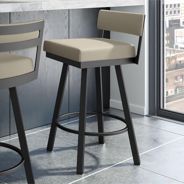 Travis 30 in. Greige Faux Leather / Black Metal Swivel Bar Stool