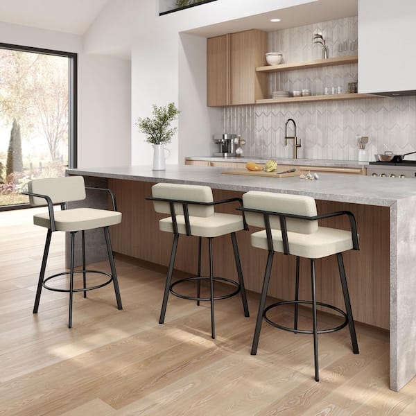 Triana 26.625 in. Cream Boucle Polyester / Black Metal Counter Stool