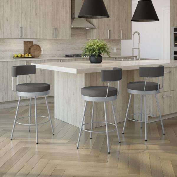 Urbana 30,75 in. Dark Grey PVC / Silver Grey Metal Swivel Bar Stool