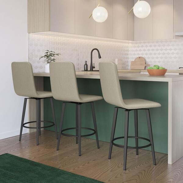 Watson 25.25 in. Beige Fabric/Black Metal Counter Stool