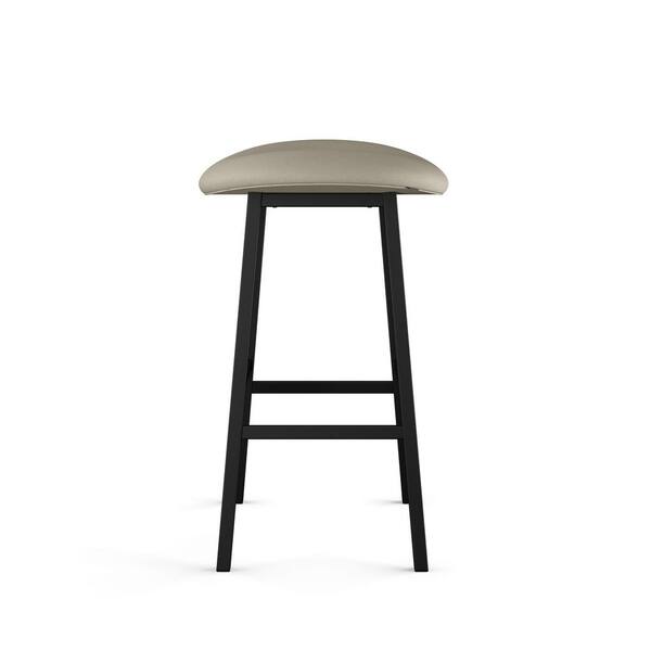 Winston 30.5 in. Greige Faux Leather / Black Metal Bar Stool