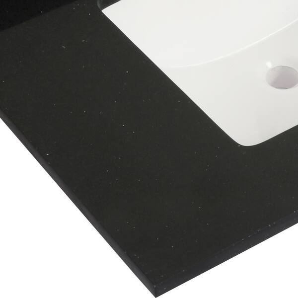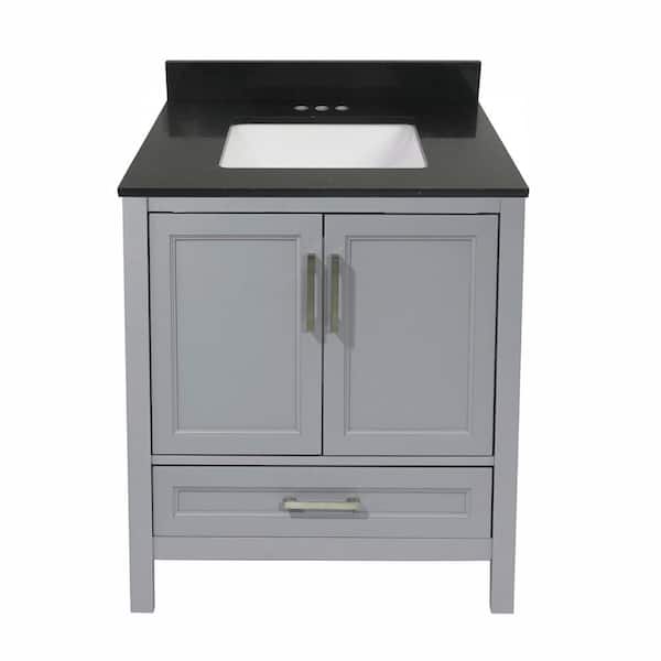 Salerno 25 in. W x 19 in. D Bath Vanity in Grey with Quartz Stone Vanity Top in Galaxy Black with White Basin