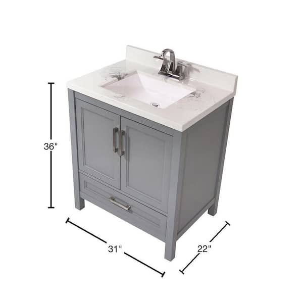 Salerno 31 in. Bath Vanity in Grey with Cultured Marble Vanity Top with Backsplash in Carrara White with White Basin