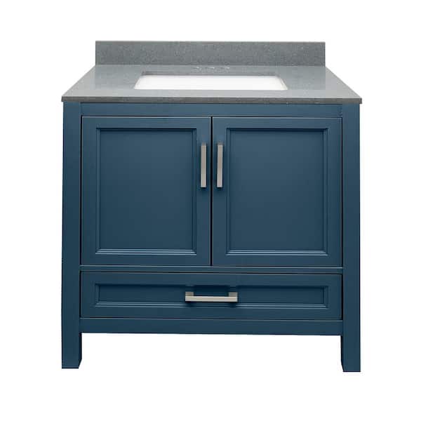 Salerno 31 in. W x 22 in. D x 36 in. H Bath Vanity in Navy Blue with Quartz Stone Vanity Top in Galaxy Gray
