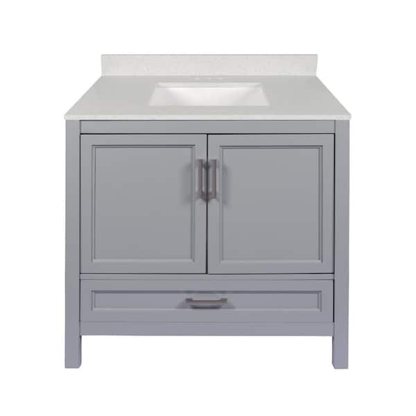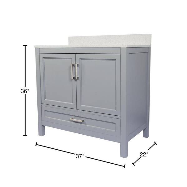 Salerno 37 in. W x 22 in. D Bath Vanity in Grey with Quartz Stone Vanity Top w/ Backsplash in Galaxy White