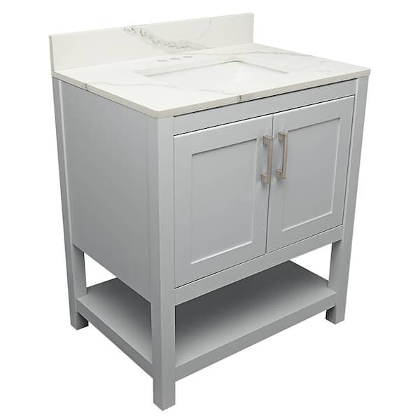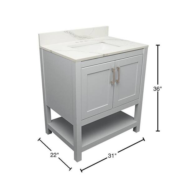 Tufino 31 in. W x 22 in. D Bath Vanity in Grey with Quartz Stone Vanity Top in Calacatta White with White Basin