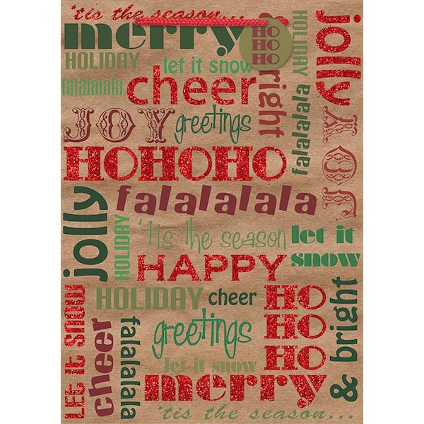 18 in. x 13 in. x 5 in. Words Kraft Bags with Glitter (10-Pack)
