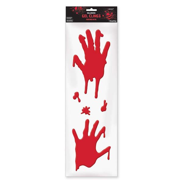 21 in. x 6.5 in. Halloween Bloody Hands Gel Clings (4-Pack)