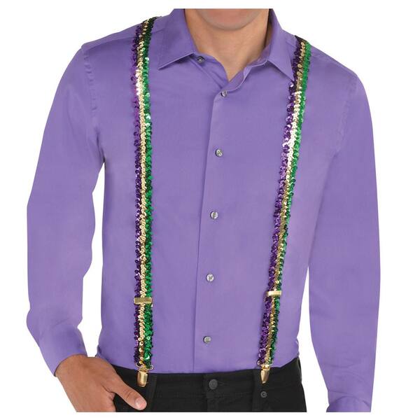 Green, Purple and Gold Glitter Mardi Gras Deluxe Sequin Suspenders (2-Pack)