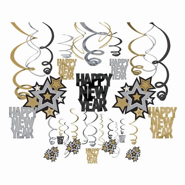 New Year's Black, Silver, and Gold Swirl Decoration (30-Count, 2-Pack)