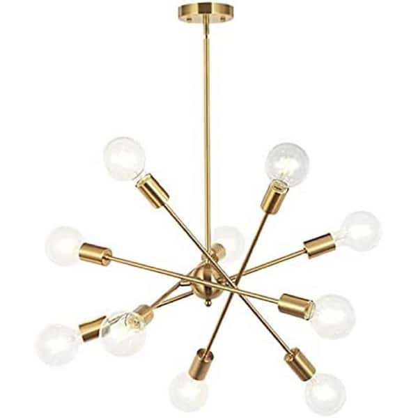 10-Light Brushed Gold Modern Sputnik Chandelier Light with Adjustable Arms