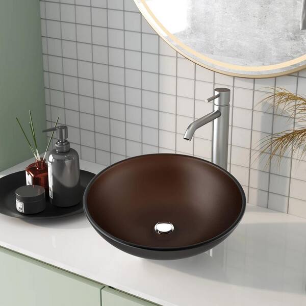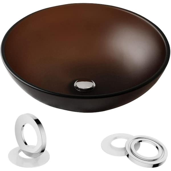 16.5 in. Top Mount Glass Round Bathroom Vessel Sink in Gold Brown