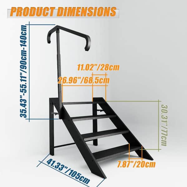 2.5 ft. 4-Step Iron Foldable Step Stool Ladder with Height Adjustable Handrail for Home,Travel Trailer (7.75 ft. Reach)
